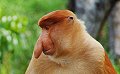 1B - Die Nase des Nasenaffenmännchens ist auffällig groß und muss beim Fressen tatsächlich beiseite geschoben werden, damit er ungestört die Nahrung zu sich nehmen kann. Nasenaffen leben ausschließlich auf der Insel Borneo. Der genaue Nutzen der großen Nasen bei den Männchen ist unklar, möglicherweise dient sie der sexuellen Attraktivität.